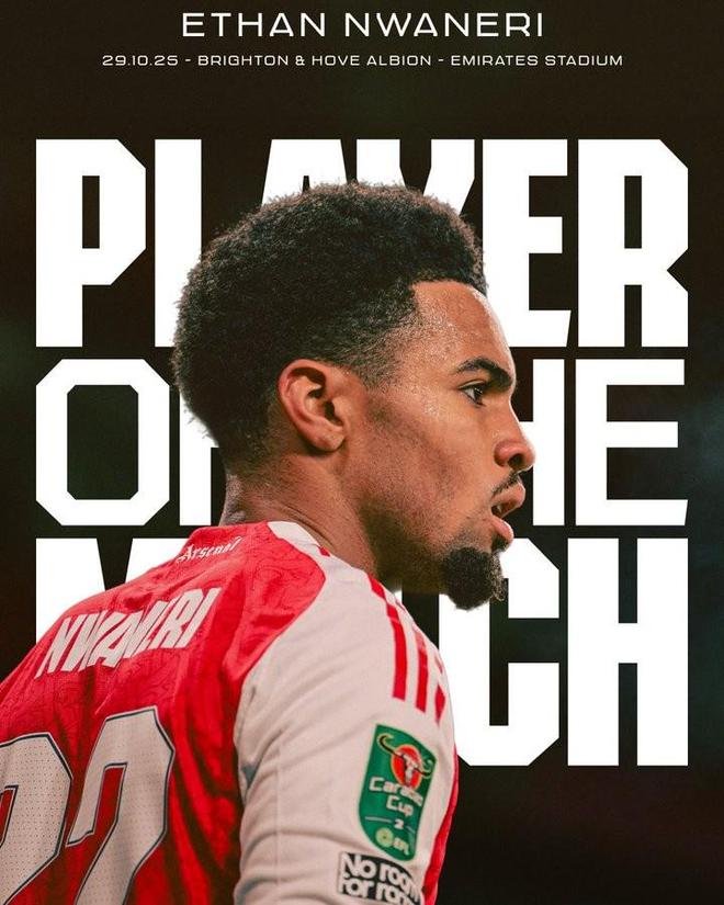 打入一球,恩瓦内里当选与布莱顿一役阿森纳队内最佳球员
